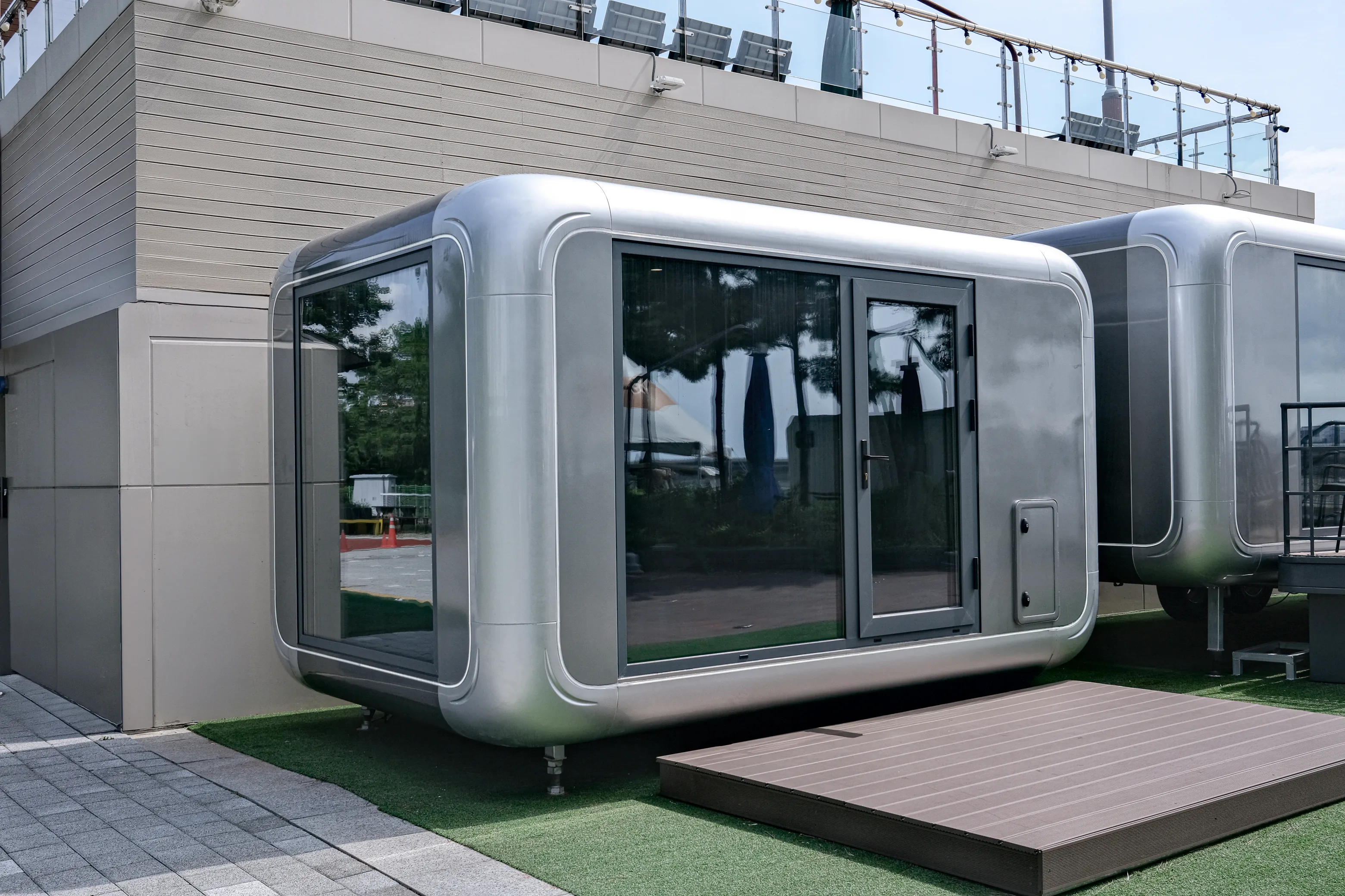 카라반과 모듈하우스에 차량 수준의 강한 내구성과 기밀성이 요구되는 구조물과 동일한 재질과 공법을 적용하여 프레임과 바디를 견고하게 결합하고, 전반적인 안정성과 내구성을 한층 높혔습니다. 또한 지속적인 연구개발로 완성도를 더욱 강화하고 있습니다.