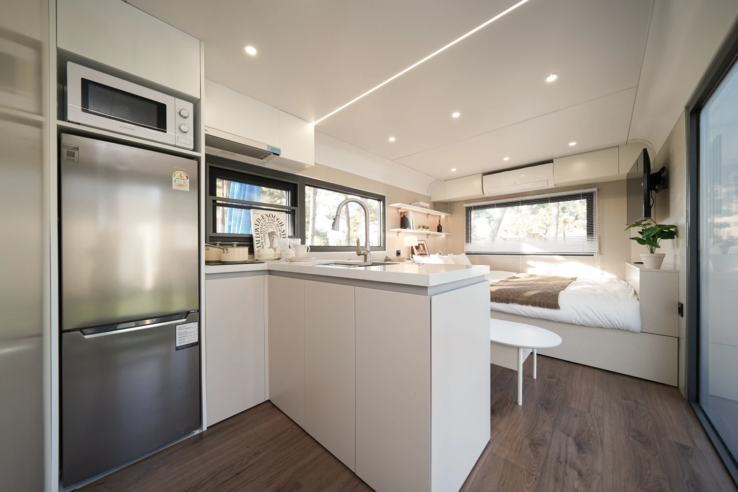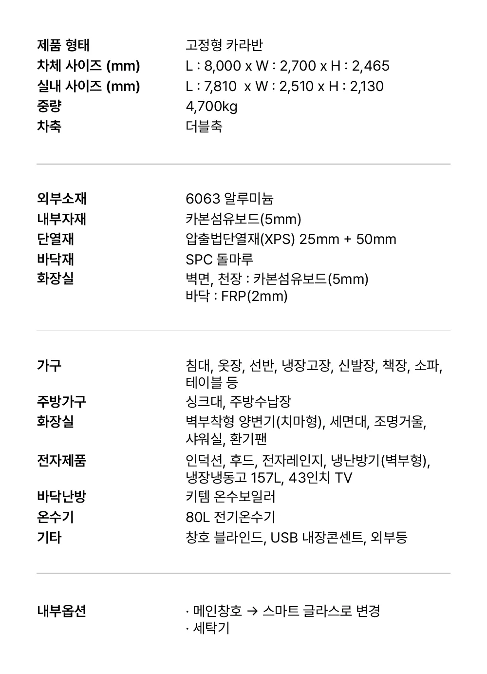 넓은 3m폭, 입체감있는 FRP, 내구성 강한 하이그로시로 제작된 정박형 카라반의 정석